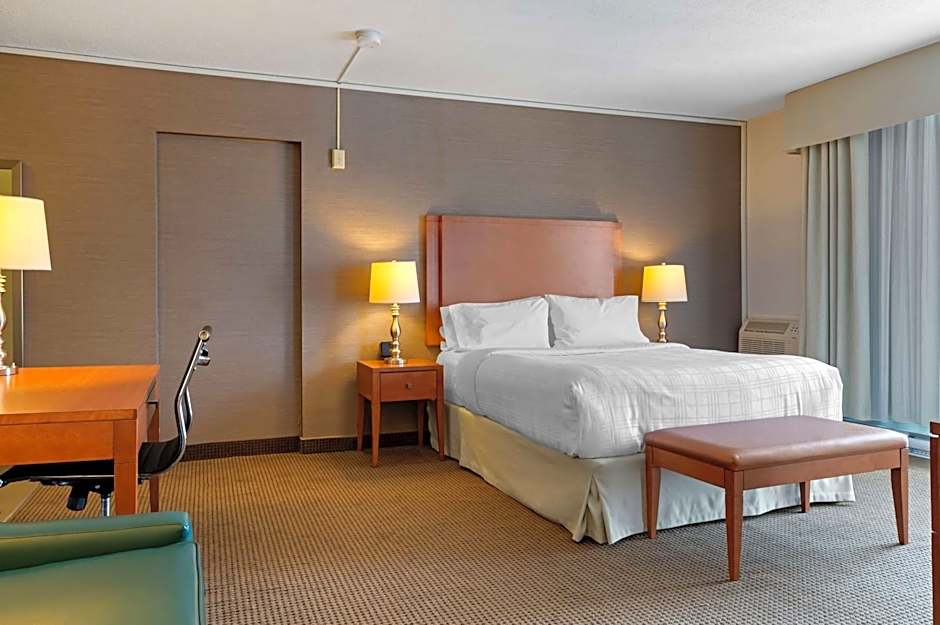 This room offers view of the Ottawa River and Canadian Parliament buildings. It includes a work desk, and coffee maker.
